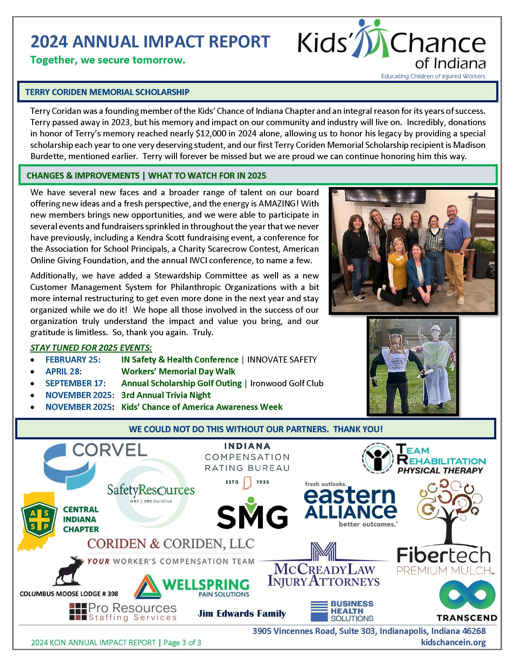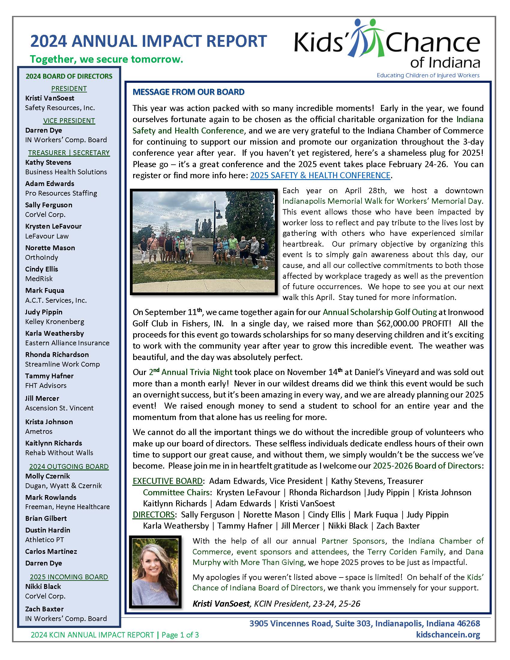 Kids’ Chance of Indiana is a 501(c)3 nonprofit organization. We’re proud to be a part of the Kids’ Chance community. Learn more